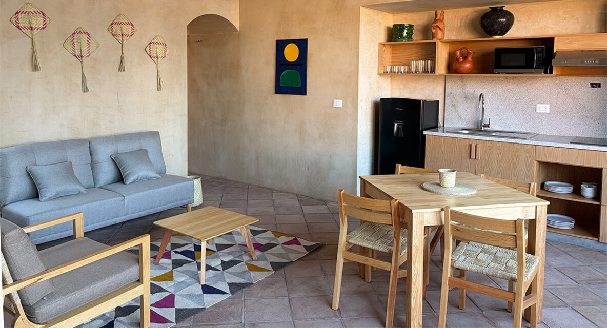 Elige JALATLACO para tu próxima estancia en Oaxaca. Este hermoso apartamento de 62 m², cuidadosamente diseñado, está ubicado en uno de los barrios más codiciados del centro de la ciudad. Cuenta con una recámara con cama king size y baño privado, además de una acogedora área social que incluye cocina totalmente equipada, sala de estar, sofá cama y comedor. Sal a la amplia terraza privada y disfruta de vistas a las montañas, o relájate en el interior con dos pantallas de TV y Wi-Fi de alta velocidad. Los huéspedes también tienen acceso a una terraza compartida en la azotea con piscina de inmersión. Con Santo Domingo y otras atracciones principales a poca distancia a pie, JALATLACO ofrece la combinación perfecta de comodidad, estilo y ubicación.