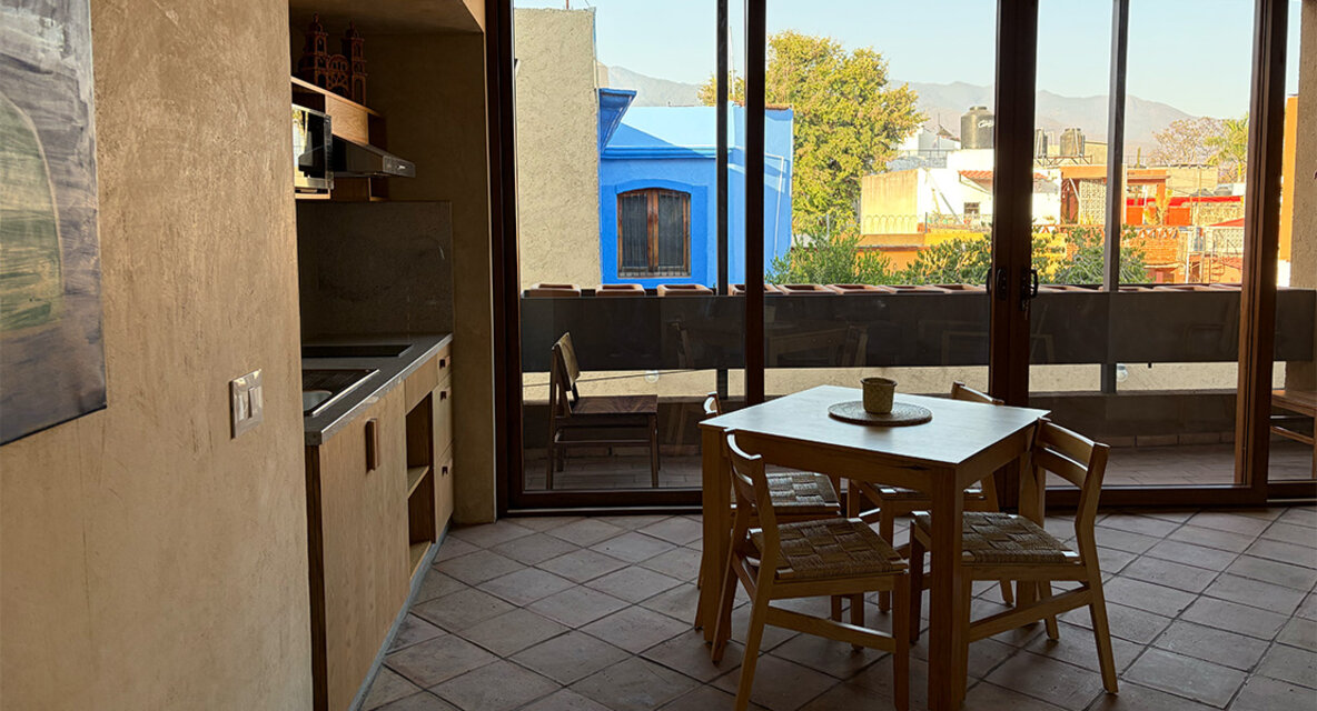 Elige JALATLACO para tu próxima estancia en Oaxaca. Este hermoso apartamento de 62 m², cuidadosamente diseñado, está ubicado en uno de los barrios más codiciados del centro de la ciudad. Cuenta con una recámara con cama king size y baño privado, además de una acogedora área social que incluye cocina totalmente equipada, sala de estar, sofá cama y comedor. Sal a la amplia terraza privada y disfruta de vistas a las montañas, o relájate en el interior con dos pantallas de TV y Wi-Fi de alta velocidad. Los huéspedes también tienen acceso a una terraza compartida en la azotea con piscina de inmersión. Con Santo Domingo y otras atracciones principales a poca distancia a pie, JALATLACO ofrece la combinación perfecta de comodidad, estilo y ubicación.