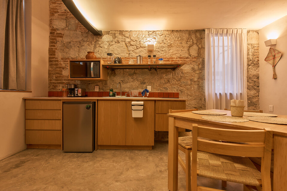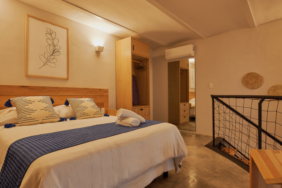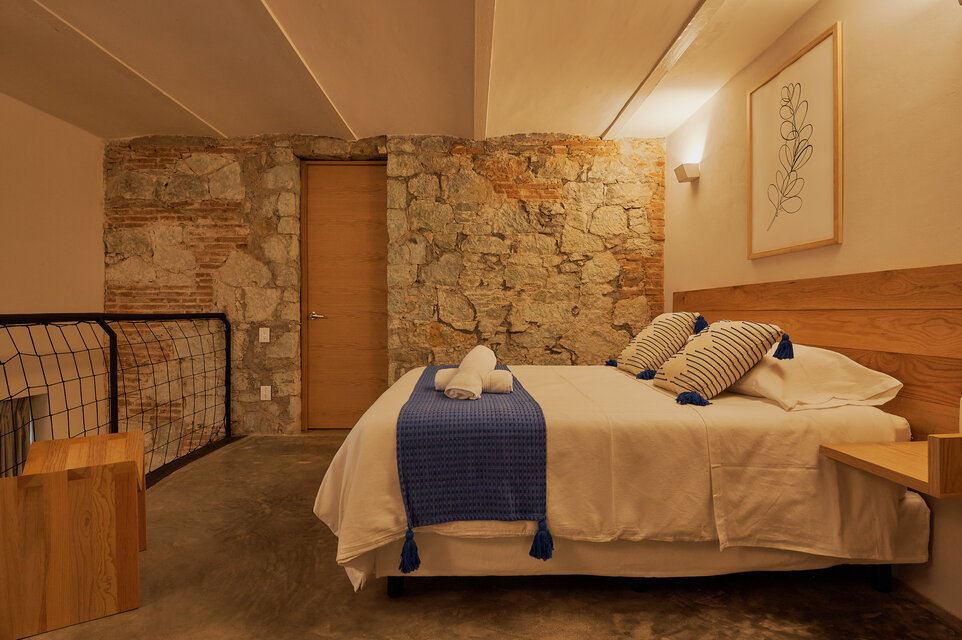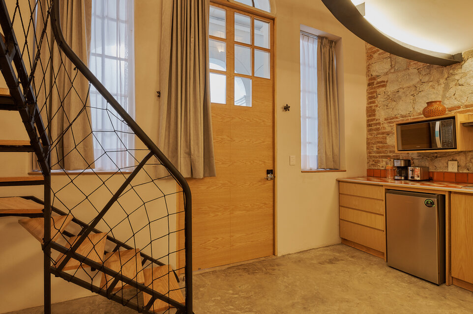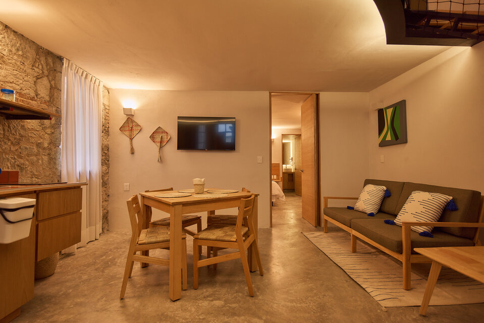 Descubre RUFINO, nuestro espacioso departamento de dos recámaras en el centro de la ciudad de Oaxaca. Con 59 m2 de superficie habitable, ofrece comedor, cocina, salón y un dormitorio independiente con su propio baño en la planta inferior. El entresuelo cuenta con un dormitorio abierto y un baño privado. Disfrute de tres pantallas de TV 4K de 43 pulgadas, Wi-Fi y un patio cubierto y completamente amueblado en la entrada. Los huéspedes también pueden utilizar la terraza común en el segundo piso. Elija RUFINO para una estancia inolvidable.